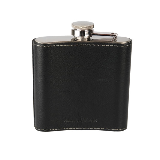 Black Leather Crest Hip Flask
