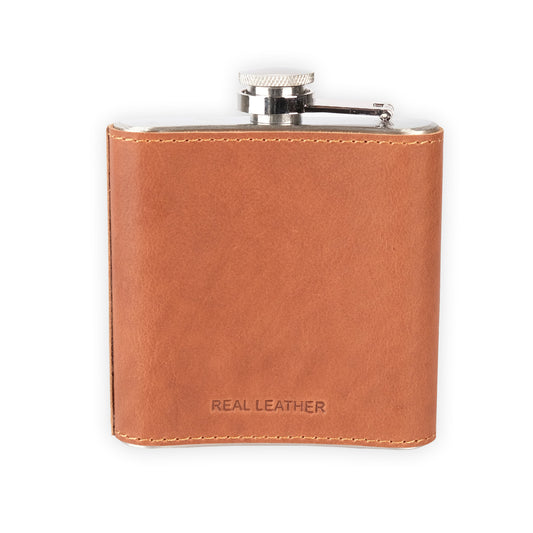 Brown Leather Logo Hip Flask